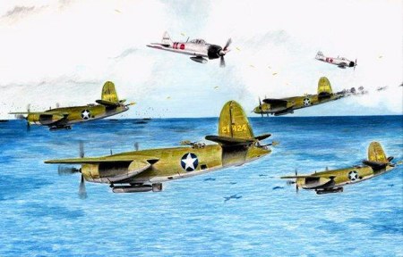 - Bombers (b26s) and escort fighters (F4U-Ds) from A18 medium